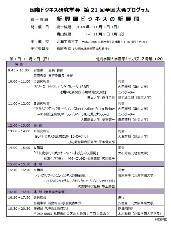 2014.11.02 本公司董事长坂上胜也在“国际商务研究学会”上进行了演讲。