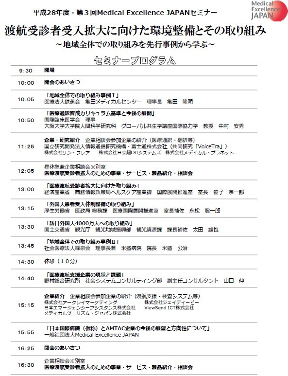 2017.01.27 第三届Medical Excellence Japan seminar上,本公司作为赴日医疗支援参展商出展,并且坂上胜也社长进行了企业介绍演讲。